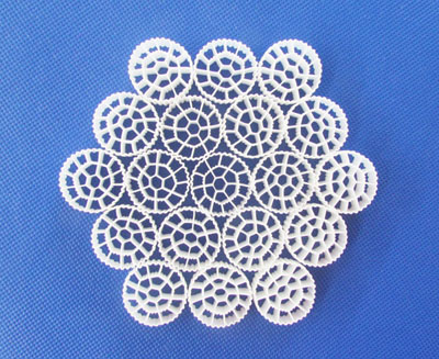 特殊的結構,空心填料結構為內外共有三層空心圓,每個圓內有1條棱,外有36條棱,經多次研究開發(fā)成功,采用一次成型。